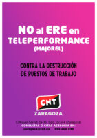 Desde CNT Zaragoza apoyamos la huelga convocada para el próximo martes 10 de marzo en Teleperformance (Majorel) y llamamos a toda la plantilla a secundarla y acudir a los actos y concentraciones que realizaremos los sindicatos durante este día.