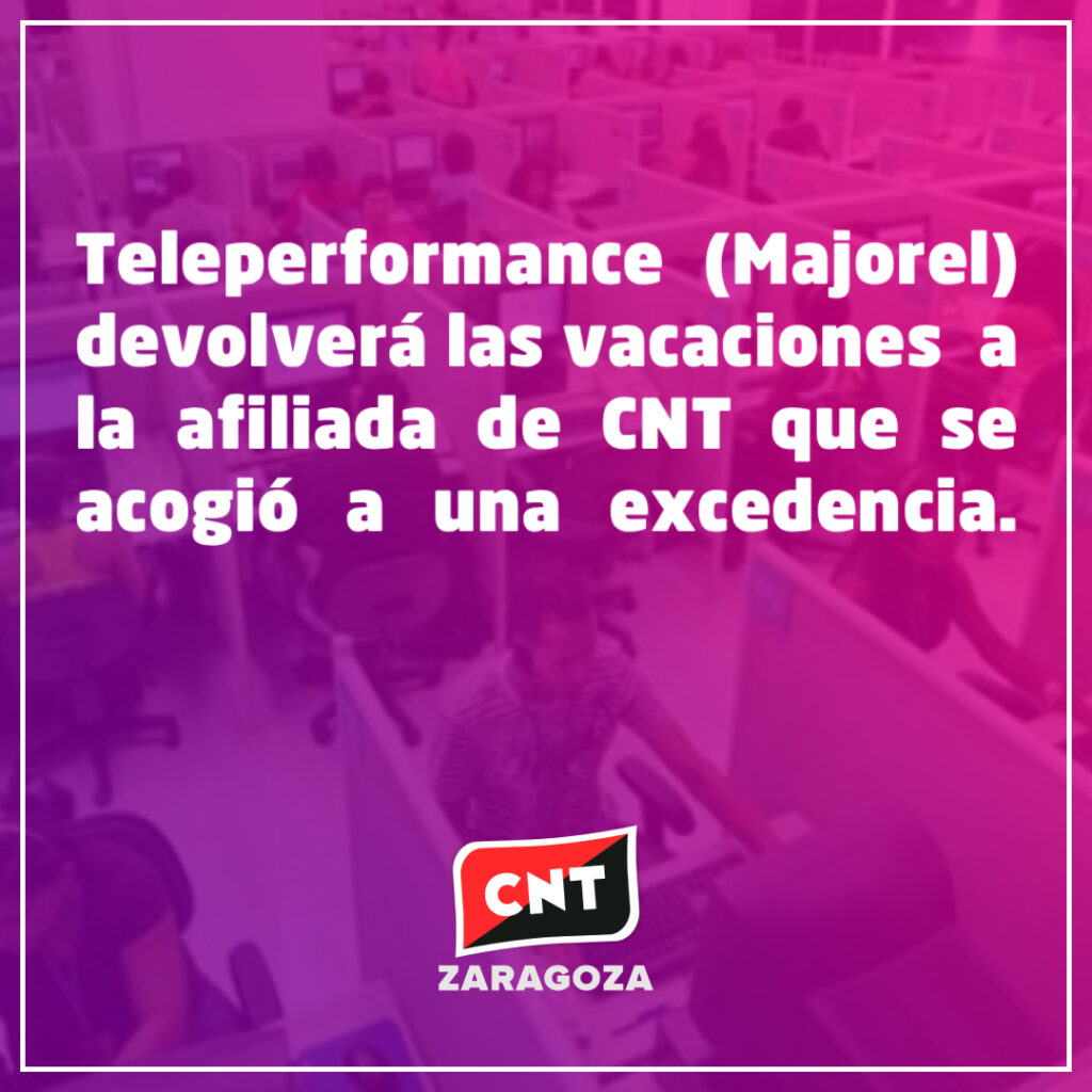 Teleperformance pacta devolver las vacaciones a la afiliada de CNT que se acogió a una excedencia