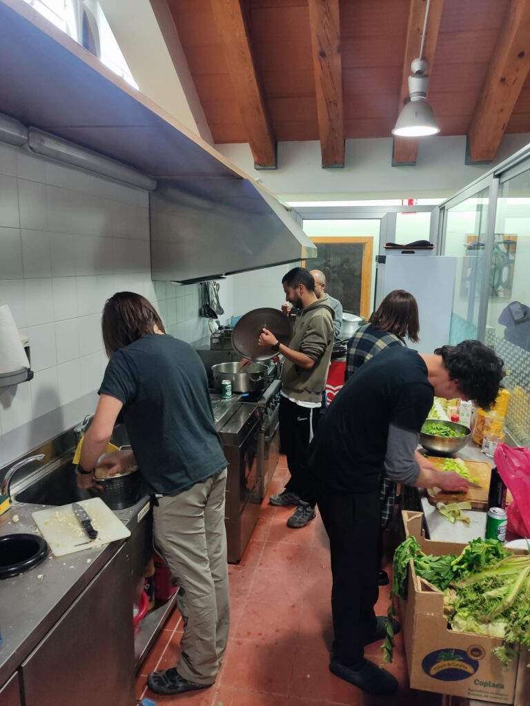 La convivencia se extendió también a los espacios cotidianos del fin de semana: la reproducción de la vida, la cocina y el cuidado del espacio se organizaron entre las mismas personas asistentes. Las comidas se prepararon en común, utilizando productos de agricultura agroecológica procedente de los productores locales que integran el sindicato, reforzando así, una práctica coherente con los valores que atraviesan el proyecto sindical.